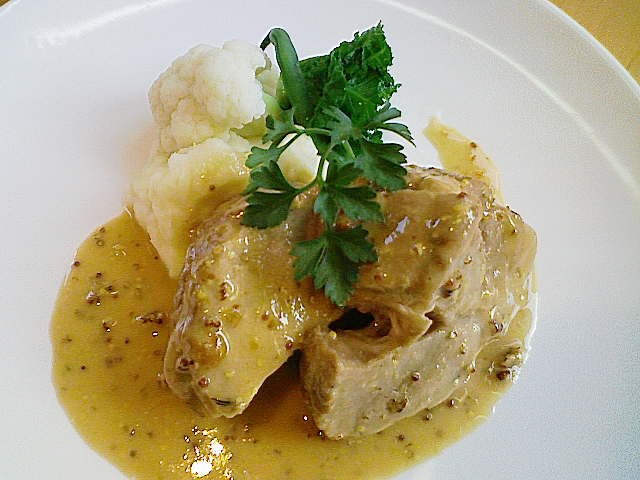 やわらかーく煮込んだお肉をマスタード風味のソースでお召し上がりください。