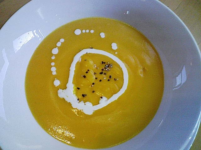 ハロウィンを少し意識して、カボチャのポタージュにしてみましたが、、、