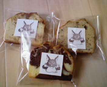 明日は、キャラメルとリンゴ、マーブル、紅茶、のパウンドケーキを持っていきます。